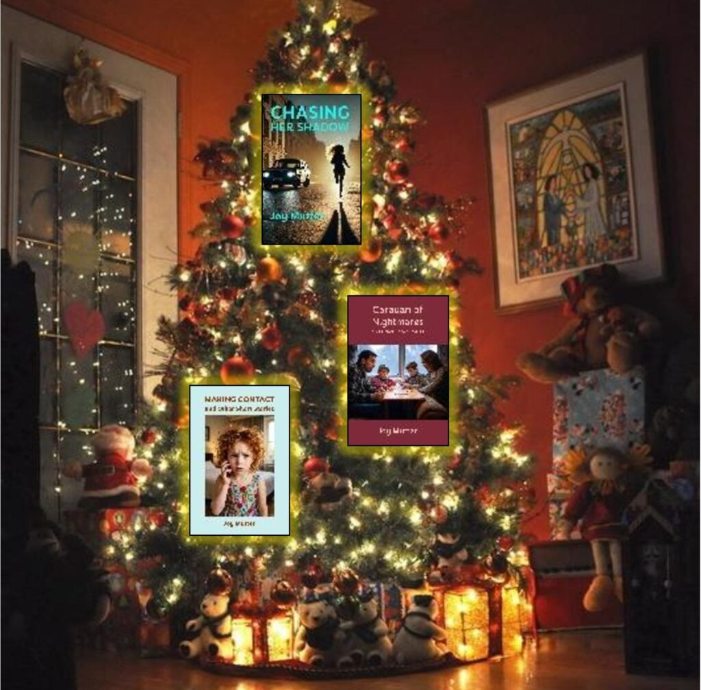 The Christmas tree was too crowded for me to put all my 25 books on there, so I decided to hang only the three I wrote in 2025. I can’t wait to find out what books will adorn my 2026 Christmas tree. One will be The Vengeance Project, a thriller I’m currently writing. I’ll probably also publish a fourth short story collection as I enjoy writing them so much. It’s hard to believe I’ve written more than forty short stories in the last decade.